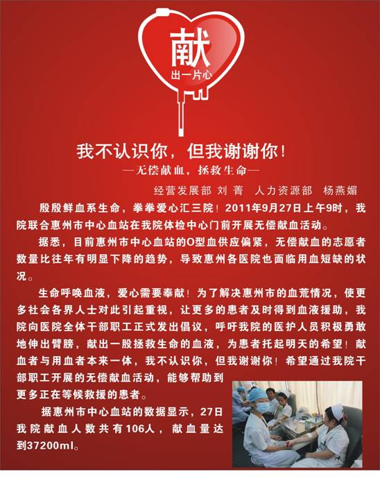 “無償獻(xiàn)血,拯救生命”——我院聯(lián)合市中心血站開展無償獻(xiàn)血活動(dòng)