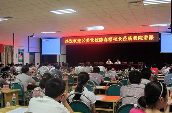 9月8日下午,區(qū)黨校陳春梧副校長應(yīng)邀蒞臨我院講授題為“歷史和人民選擇了中國共產(chǎn)黨——學(xué)習(xí)胡錦濤同志七·一重要講話體會”的黨課,黨課由馬顯力院長主持,院領(lǐng)導(dǎo)班子、黨員同志、中層干部等100多人出席 。