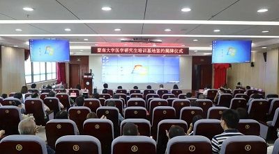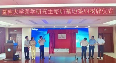 暨南大學醫(yī)學部主任羅良平與惠州三院李雪松院長簽訂了《共建醫(yī)學研究生聯(lián)合培養(yǎng)基地協(xié)議》。隨后,與會領導共同為暨南大學醫(yī)學研究生培養(yǎng)基地揭牌?! ?/span>