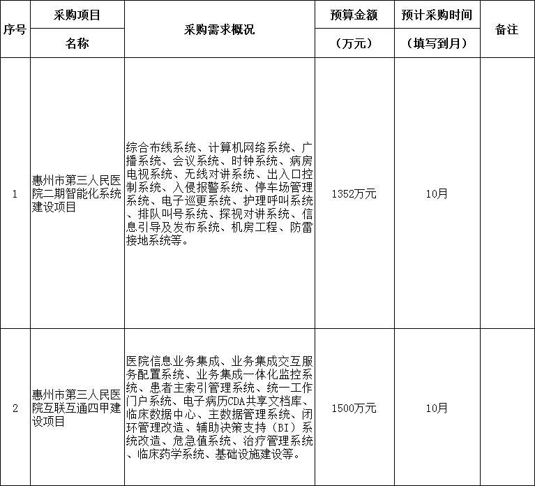 惠州市第三人民醫(yī)院2022年8月(至)10月政府采購(gòu)意向