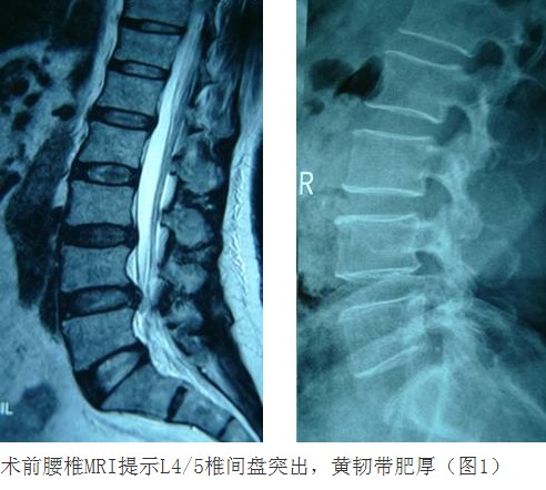 病例匯報1:老年女性患者,因“反復(fù)腰腿痛10年、加重伴左下肢麻痛2月”之主訴入院,術(shù)前左下肢肌力3+級,淺感覺減退。術(shù)后腰腿疼緩解,肌力及感覺恢復(fù)正常。(圖1、圖2)