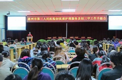 12月1日下午,護理部組織全院護理人員在多功能會議室舉行了惠州市第三人民醫(yī)院創(chuàng)優(yōu)質(zhì)護理服務(wù)及創(chuàng)“三甲”升溫會。