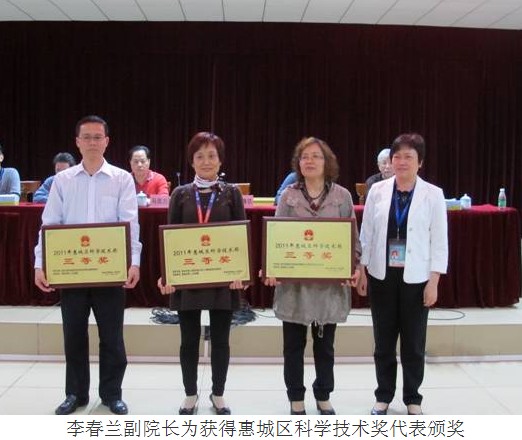 2012年3月30日下午,在惠州市第三人民醫(yī)院多功能會議廳召開了科教總結(jié)暨表彰大會,對我院優(yōu)秀醫(yī)生進行了表彰,授予惠州市第三人民醫(yī)院2011年度“優(yōu)秀醫(yī)生”稱號,并頒發(fā)榮譽證書、獎金。