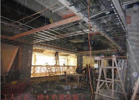 2、首層大廳天花吊桿安裝完成80%;