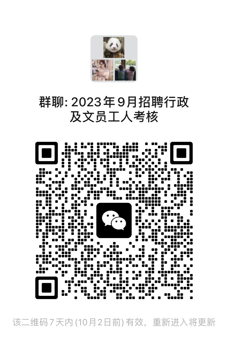 我院于2023年920日舉行了招聘行政后勤人員及文員、工人的面試,現(xiàn)將面試成績(jī)進(jìn)行公布。請(qǐng)進(jìn)入試工考核人員掃描上方二維碼進(jìn)群安排試工相關(guān)事宜。
