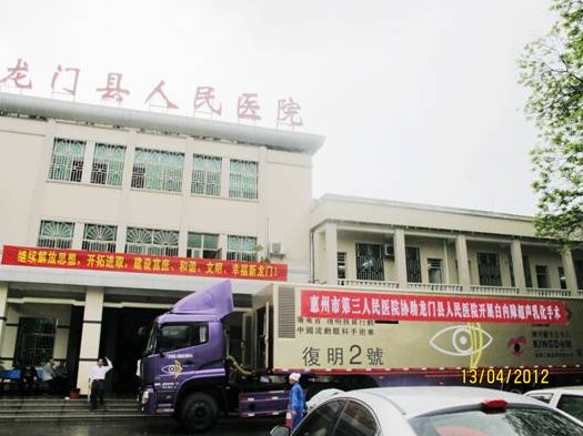 4月12日下午3時(shí)白內(nèi)障巡回手術(shù)車與設(shè)備維護(hù)人員先行趕赴龍門縣人民醫(yī)院,當(dāng)日下午5時(shí)30分左右到達(dá)龍門縣人民醫(yī)院,并進(jìn)行設(shè)備安裝調(diào)試。