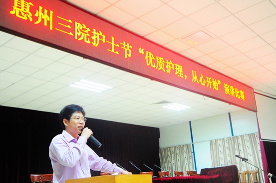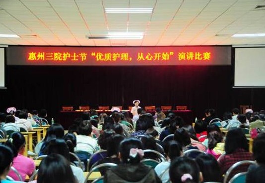 為紀(jì)念2012年國際護士節(jié),展示白衣天使積極進取、勇于奉獻、迎接時代挑戰(zhàn)的精神風(fēng)貌和理想追求,促進護理事業(yè)發(fā)展,惠城區(qū)衛(wèi)生局?jǐn)M于4月26日舉行惠城區(qū)2012年國際護士節(jié)“優(yōu)質(zhì)護理,從心做起”演講比賽活動。我院護理部高度重視,分別利用下午和晚上時間在多功能會議室舉行了預(yù)賽和決賽。