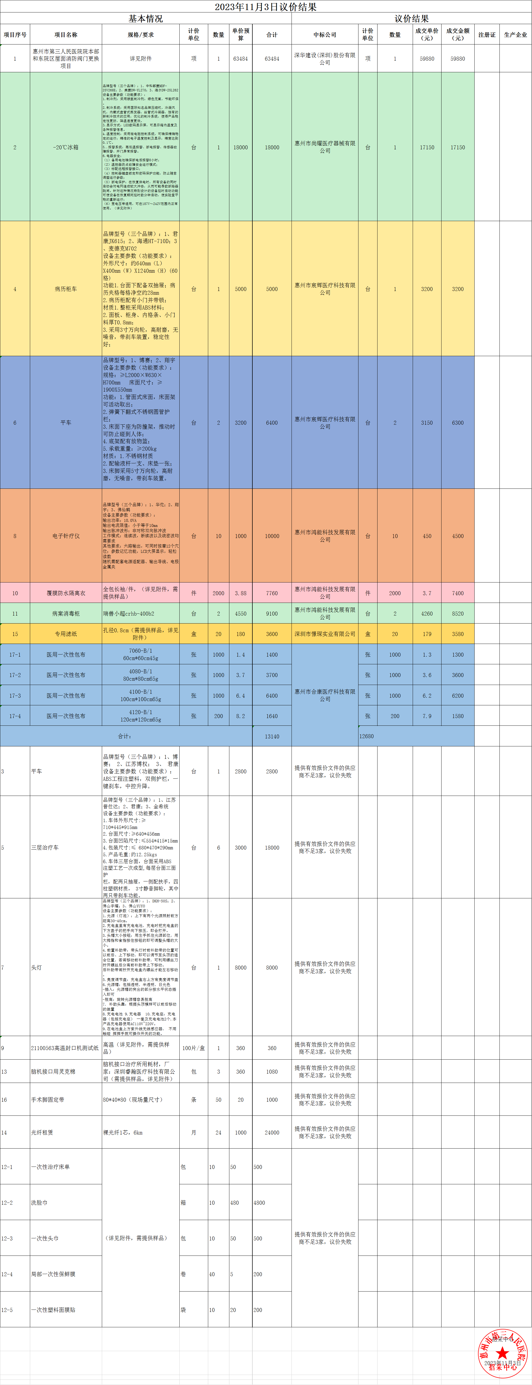 2023年11月03日議價(jià)結(jié)果