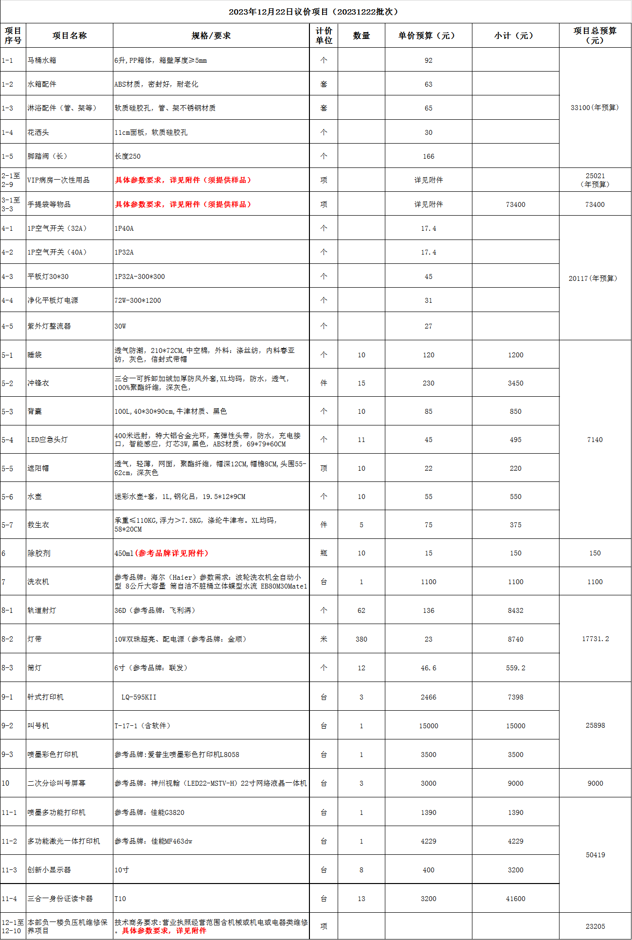 一、項目名稱:20231222議價項目