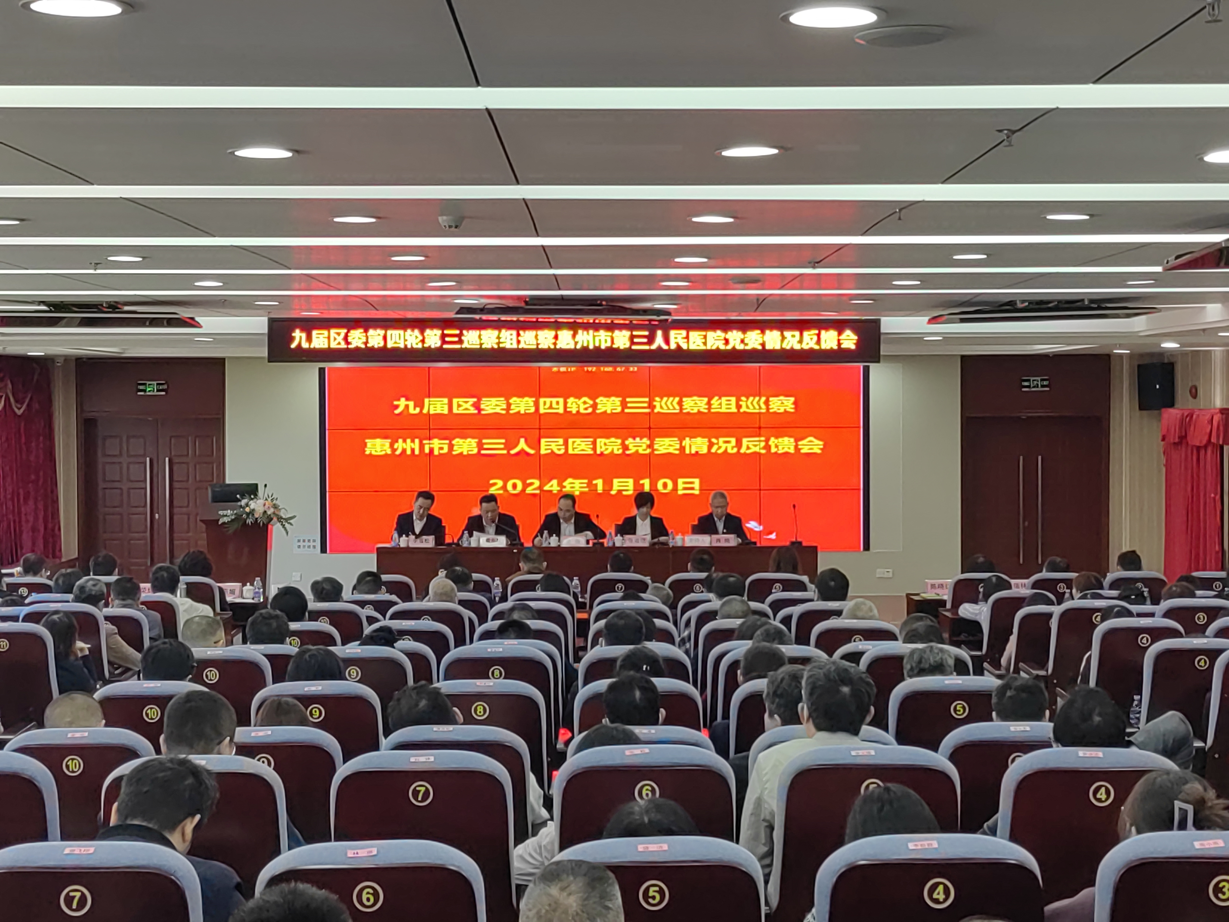 區(qū)委巡察工作領(lǐng)導小組,區(qū)委第三巡察組,區(qū)紀委監(jiān)委派駐區(qū)衛(wèi)健局紀檢組,區(qū)衛(wèi)健局黨組等有關(guān)同志出席會議;惠州三院黨政領(lǐng)導班子成員、紀委班子成員,各黨支部書記,各科室主任(學組負責人)和護士長參加會議。