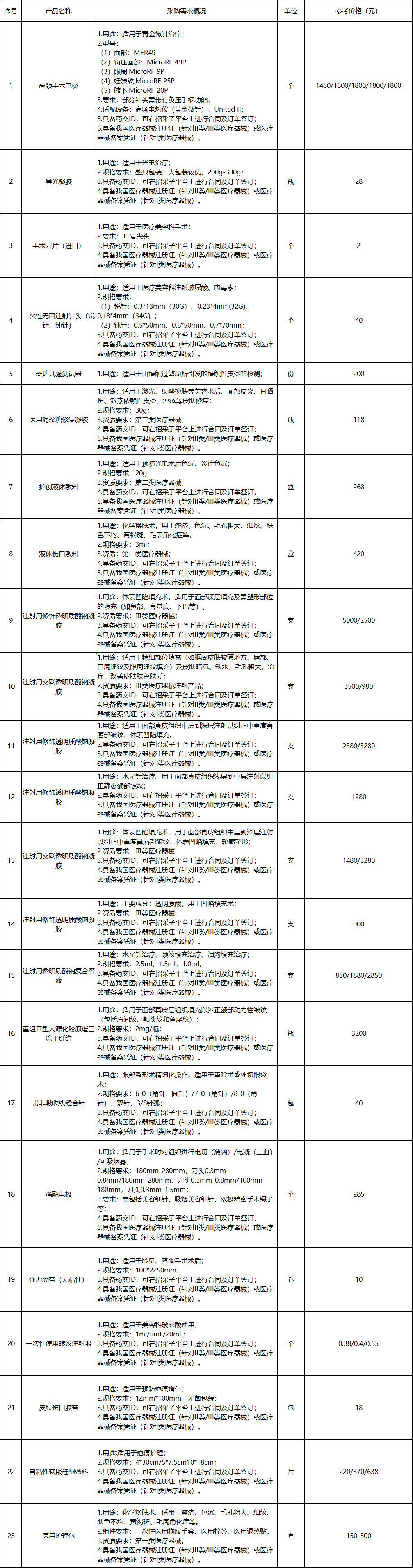 (4)如報名多個醫(yī)用耗材項目,應將所需報名的醫(yī)用耗材產品談判填入報名產品明細表。