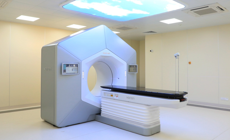 瓦里安是目前加速器研發(fā)歷史最久、市場(chǎng)占有率最高的全球第一大放療設(shè)備研發(fā)生產(chǎn)商。Halcyon(速銳)影像引導(dǎo)智慧精準(zhǔn)放療系統(tǒng)是2018年獲得美國(guó)FDA認(rèn)證的全新一代高智能化精準(zhǔn)放療平臺(tái)。其完全打破傳統(tǒng)直線加速器設(shè)計(jì)構(gòu)造,采用全新閉合環(huán)形機(jī)架設(shè)計(jì)。具有高速機(jī)架、高速雙層多葉準(zhǔn)直器系統(tǒng)、高速高分辨率迭代重建錐形束CT(iCBCT)、GPU高速智能運(yùn)算系統(tǒng)、高速圖像引導(dǎo)體位校準(zhǔn)系統(tǒng)等傳統(tǒng)放療設(shè)備不具備的先進(jìn)技術(shù)。其將傳統(tǒng)放療設(shè)備10余分鐘的治療過程,壓縮到5分鐘內(nèi),一鍵式自動(dòng)化完成高速高清圖像引導(dǎo)的精準(zhǔn)放療。使得放射治療可以真正實(shí)現(xiàn)每次治療的毫米級(jí)精準(zhǔn)實(shí)施,并大大縮短患者在放療機(jī)房?jī)?nèi)的治療時(shí)間。降低患者心理緊張情緒,減少治療過程中患者的不自主動(dòng)作,極大提高治療效率與精度,有效提高治療的安全性,降低輻射副損傷。在全身各系統(tǒng)腫瘤的放射治療應(yīng)用中,Halcyon全影像引導(dǎo)智慧精化準(zhǔn)放療系統(tǒng)均顯示出更優(yōu)的劑量分布、更佳的器官保護(hù)等,具有科學(xué)數(shù)據(jù)支持的先進(jìn)優(yōu)勢(shì),是最新一代高精準(zhǔn)智能放療系統(tǒng)的里程碑。