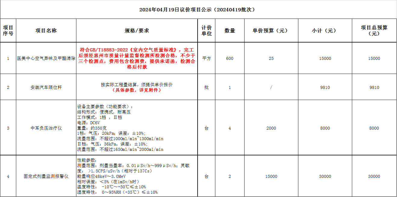 惠州市第三人民醫(yī)院擬定一批采購(gòu)項(xiàng)目進(jìn)行議價(jià)采購(gòu),歡迎符合資格條件的投標(biāo)人投標(biāo)。