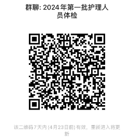 請進入體檢環(huán)節(jié)的應聘者攜帶身份證原件前往我院東院區(qū)健康管理中心進行體檢,并于4月23日前完成體檢。我院入職體檢僅在工作日開放,請合理安排時間,體檢咨詢電話:2359719,入圍人員請掃描上方二維碼入群。
