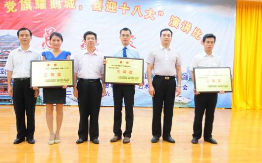 為隆重迎接中國共產(chǎn)黨第十八次全國代表大會的勝利召開,6月13日上午,在西湖大劇院舉行以“黨旗耀鵝城,喜迎十八大”為主題的演講比賽總決賽。