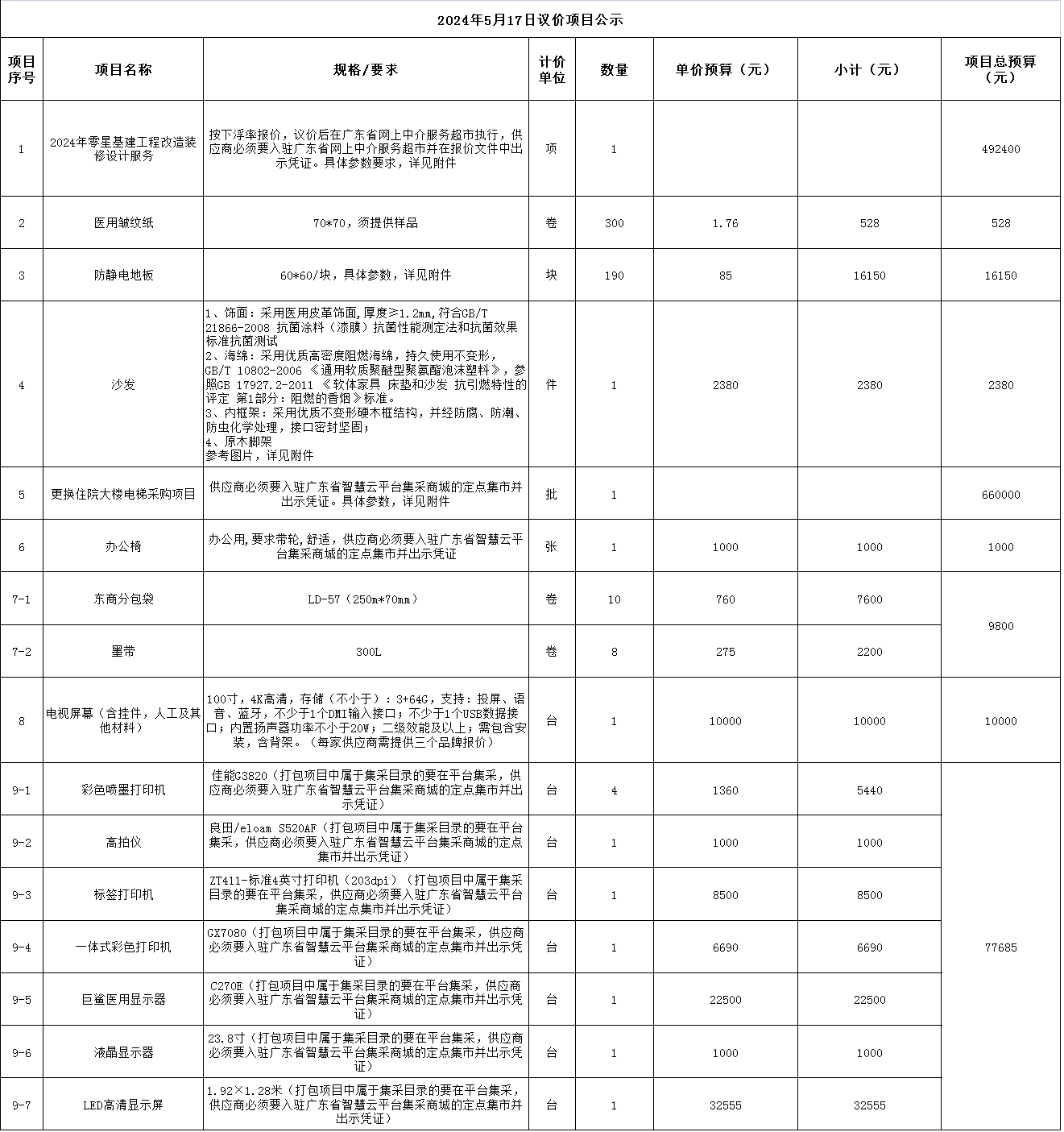 一、項目名稱:20240517議價項目