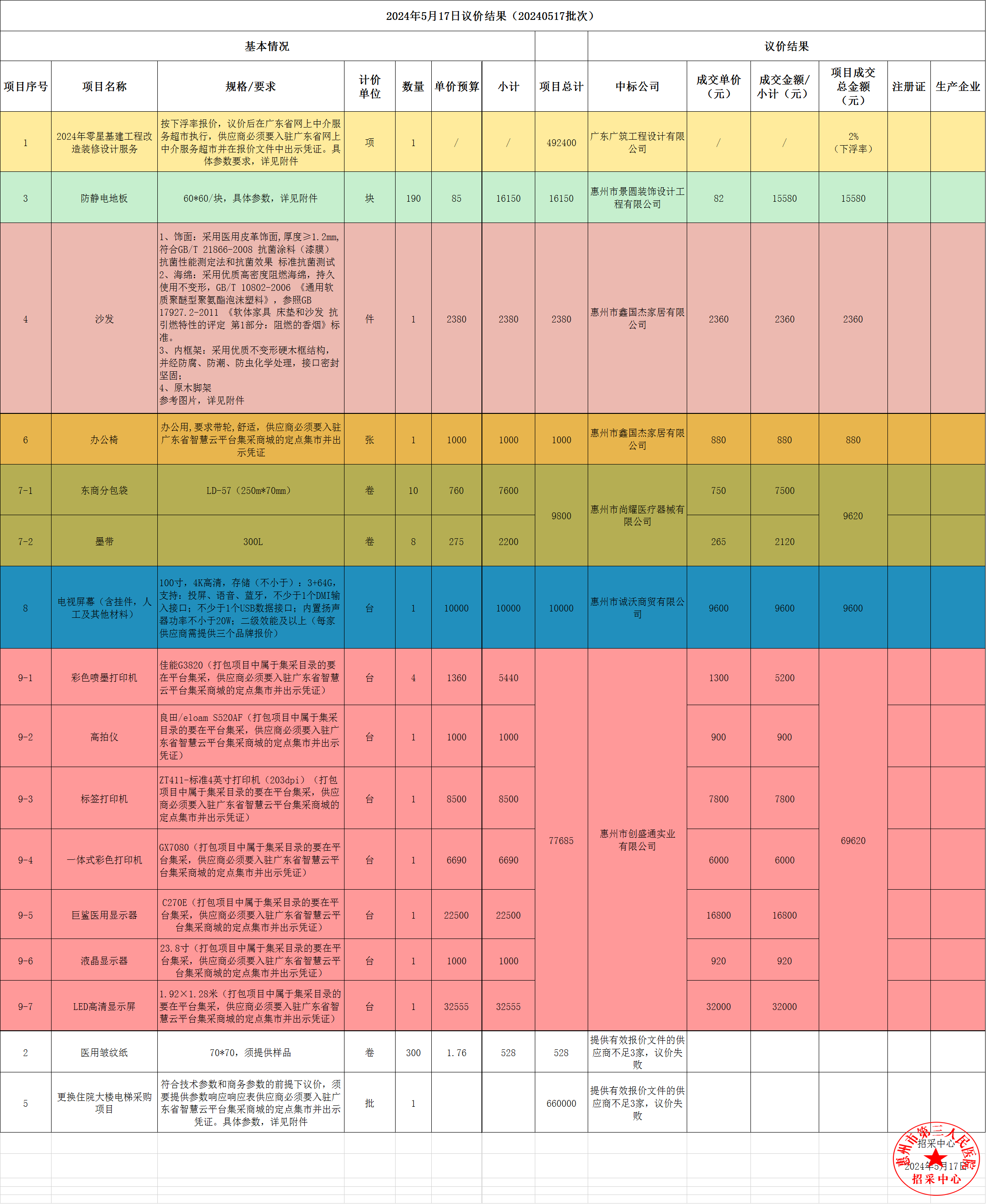 2024年5月17日議價(jià)結(jié)果公示