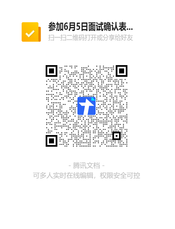 1.為了更好安排會場及時(shí)間,請確定參加面試的人員務(wù)必于6月3日12:00前掃描上方二維碼登記回復(fù)。
