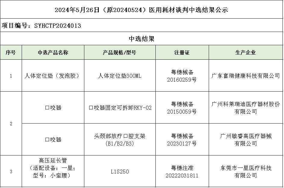 2024年5月26日醫(yī)用耗材談判中選結(jié)果公示(原20240524)