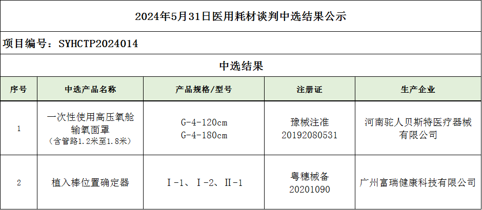 2024年5月31日醫(yī)用耗材談判中選結(jié)果公示