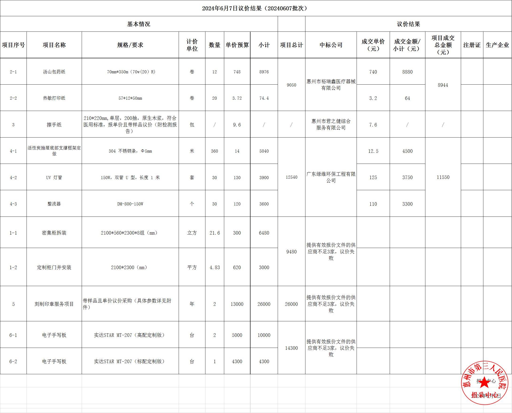 2024年6月7日議價(jià)結(jié)果公示