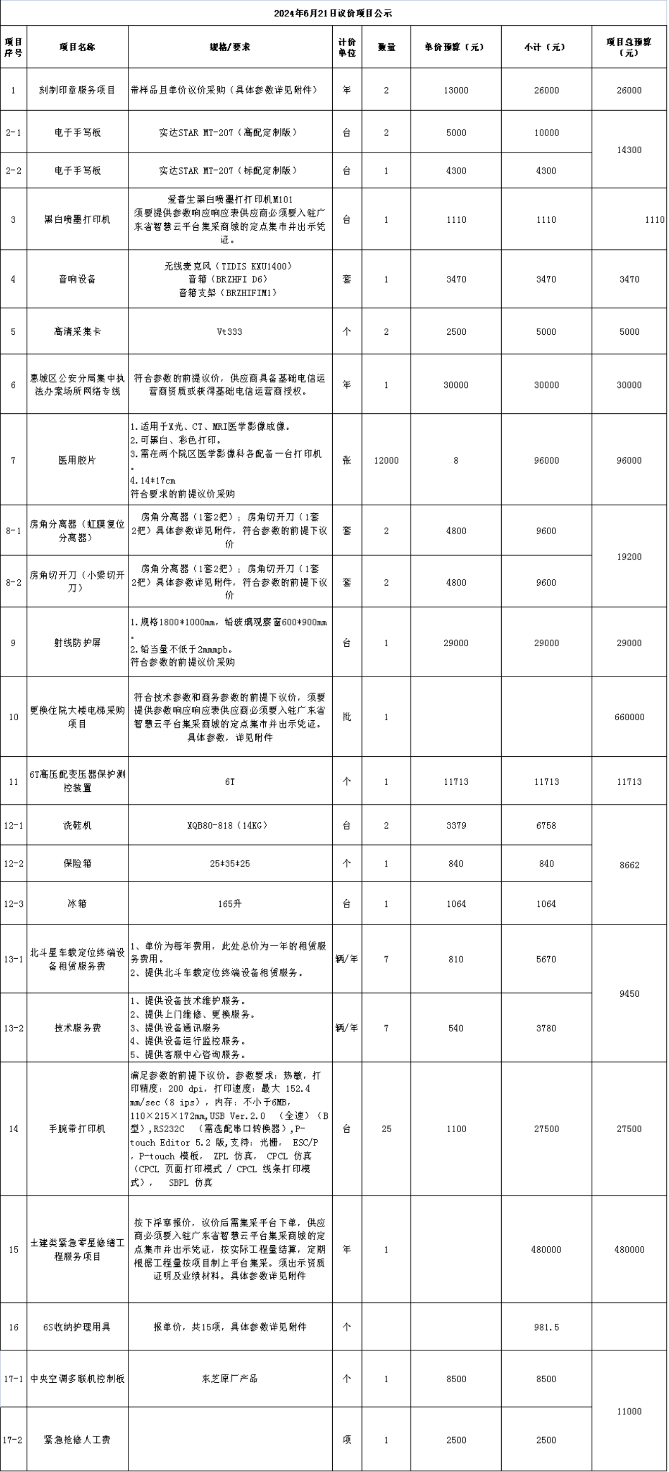 一、項目名稱:20240621議價項目