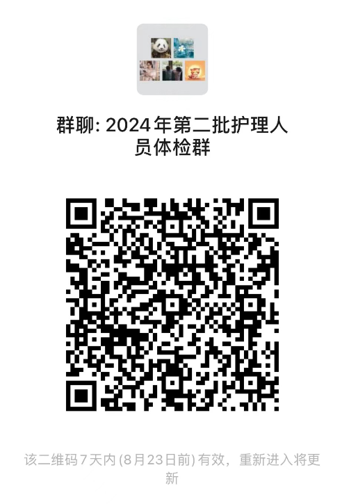 ? 我院于2024年8月15日舉行了護理人員的招聘筆試及面試,現(xiàn)將考試成績及名次予以公布。請進入體檢環(huán)節(jié)的應(yīng)聘者攜帶身份證原件前往我院東院區(qū)健康管理中心進行體檢,并于8月21日前完成體檢。我院入職體檢僅在工作日開放,請合理安排時間,體檢咨詢電話:2359719,入圍人員請掃描上方二維碼入群。