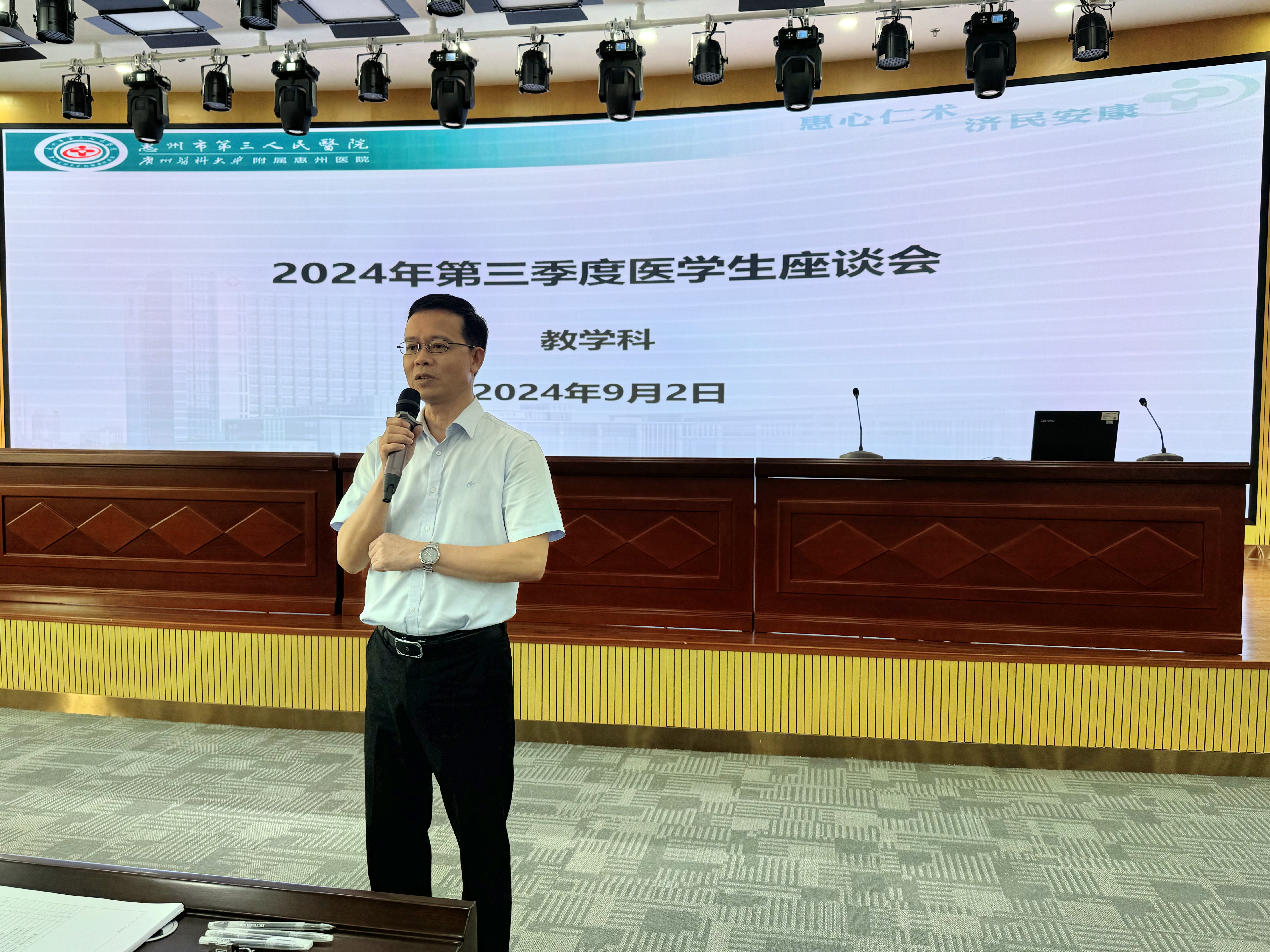 為進(jìn)一步規(guī)范在院臨床醫(yī)學(xué)生管理,提高醫(yī)院臨床師資的教學(xué)水平,切實(shí)關(guān)心醫(yī)學(xué)生的工作、學(xué)習(xí)和生活情況。9月2日下午,我院在院本部心腦血管病大樓6樓學(xué)術(shù)報(bào)告廳召開2024年度第三季度醫(yī)學(xué)生座談會(huì)??平滩抗ぷ魅藛T、全體臨床醫(yī)學(xué)生(實(shí)習(xí)生、助理全科培訓(xùn)學(xué)員、住培生)共220余人參加本次座談。座談會(huì)由教學(xué)科孔元蓉主任主持。