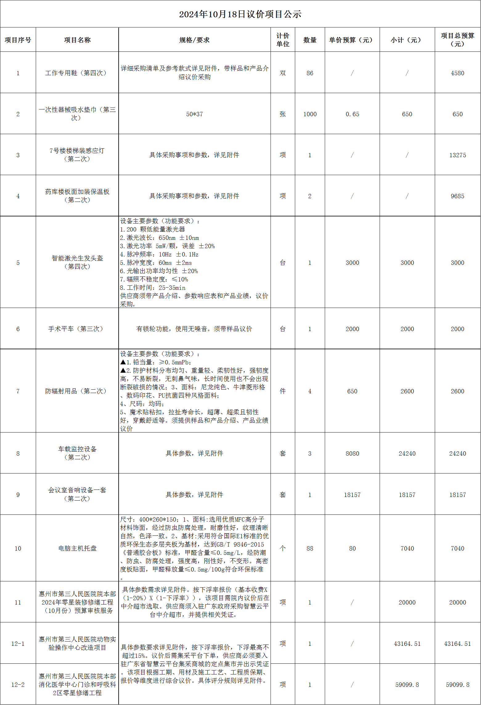 一、項目名稱:20241018議價項目