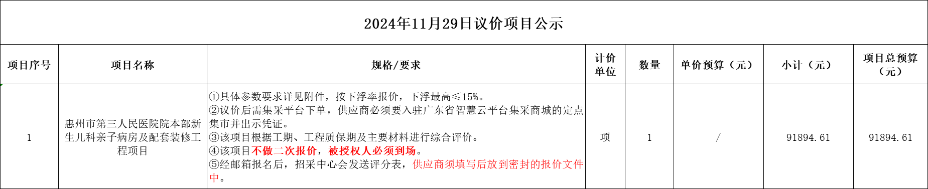 一、項目名稱:20241129議價項目