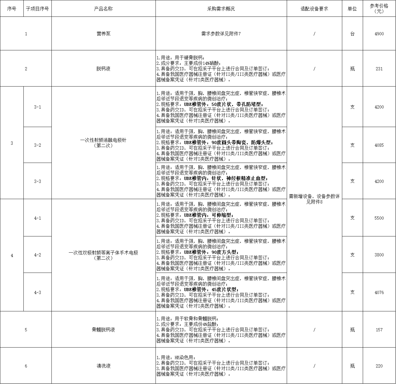 7、項(xiàng)目3-一次性射頻消融電極針、項(xiàng)目4-一次性雙極射頻等離子體手術(shù)電極設(shè)備參數(shù)需求 (附件8)