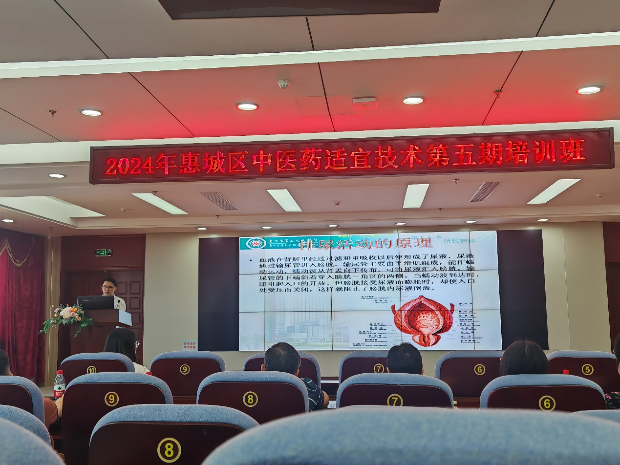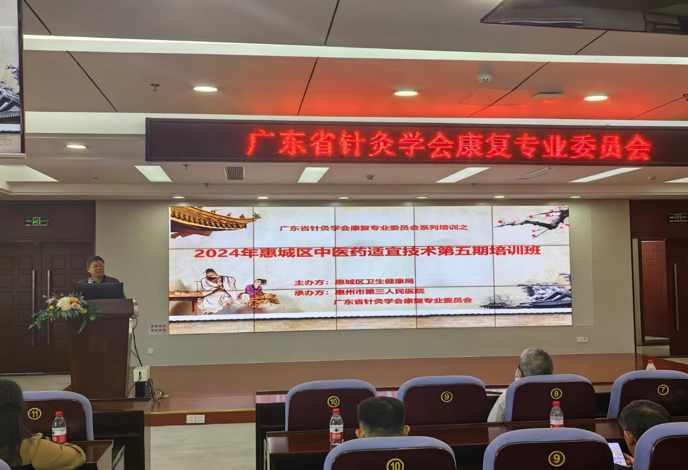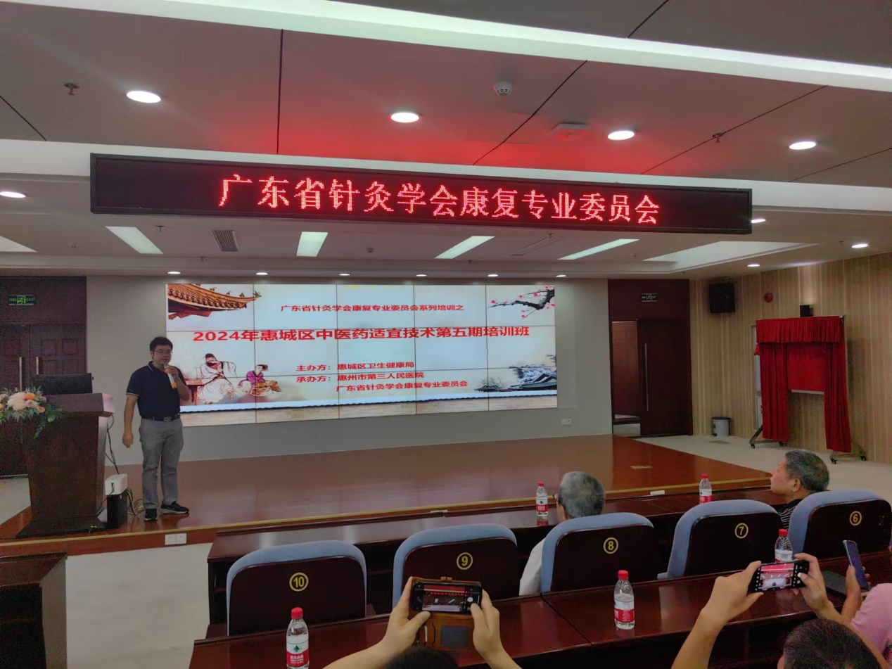 為進(jìn)一步推進(jìn)全國基層中醫(yī)藥示范區(qū)創(chuàng)建,推廣陳小凱省名中醫(yī)工作室傳承經(jīng)驗(yàn),提升惠城區(qū)中醫(yī)藥服務(wù)能力,根據(jù)惠城區(qū)衛(wèi)健局部署,2024年10月12日上午,2024年度惠城區(qū)中醫(yī)藥適宜技術(shù)第五期培訓(xùn)班在惠州市第三人民醫(yī)院東院區(qū)五樓學(xué)術(shù)報(bào)告廳順利進(jìn)行。本次培訓(xùn)班惠城區(qū)衛(wèi)健局二級調(diào)研員張永華,惠州市第三人民醫(yī)院黨委委員陳小凱等出席。來自全區(qū)各醫(yī)療衛(wèi)生單位的150余名學(xué)員、惠州三院康復(fù)醫(yī)學(xué)科、中醫(yī)科等科室50余名員工共約200余人踴躍參與,會議由惠州三院康復(fù)醫(yī)學(xué)科病房負(fù)責(zé)人李俊滔副主任醫(yī)師主持?;葜萑嚎祻?fù)醫(yī)學(xué)科陳小凱主任醫(yī)師、李旅萍副主任醫(yī)師、李翊主治醫(yī)師、肖培根醫(yī)師、許磊醫(yī)師進(jìn)行授課。