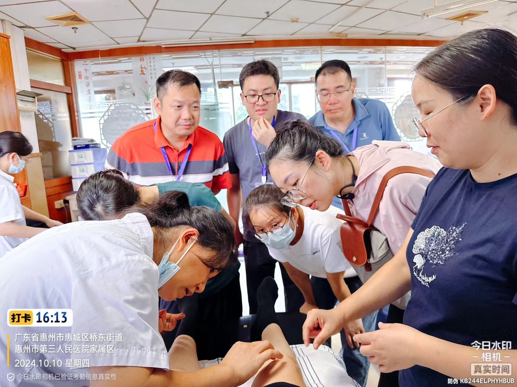 下午在惠州市第三人民醫(yī)院康復(fù)醫(yī)學(xué)科進(jìn)行操作培訓(xùn),分別由陳小凱主任醫(yī)師、李旅萍副主任醫(yī)師、曾飛翔主治醫(yī)師、李翊主治醫(yī)師、覃宇主治醫(yī)師對全區(qū)各醫(yī)療衛(wèi)生單位的學(xué)員進(jìn)行現(xiàn)場靳三針治療的針灸培訓(xùn)。