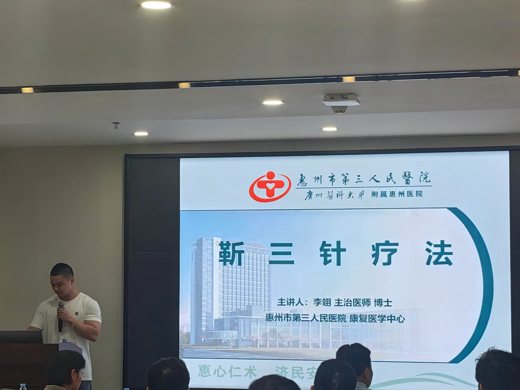 本次培訓(xùn)班上午在惠州衛(wèi)生職業(yè)技術(shù)學(xué)院達(dá)苑一樓報告廳進(jìn)行,惠州三院康復(fù)醫(yī)學(xué)科陳小凱主任醫(yī)師、李旅萍副主任醫(yī)師、李翊主治醫(yī)師進(jìn)行理論授課。