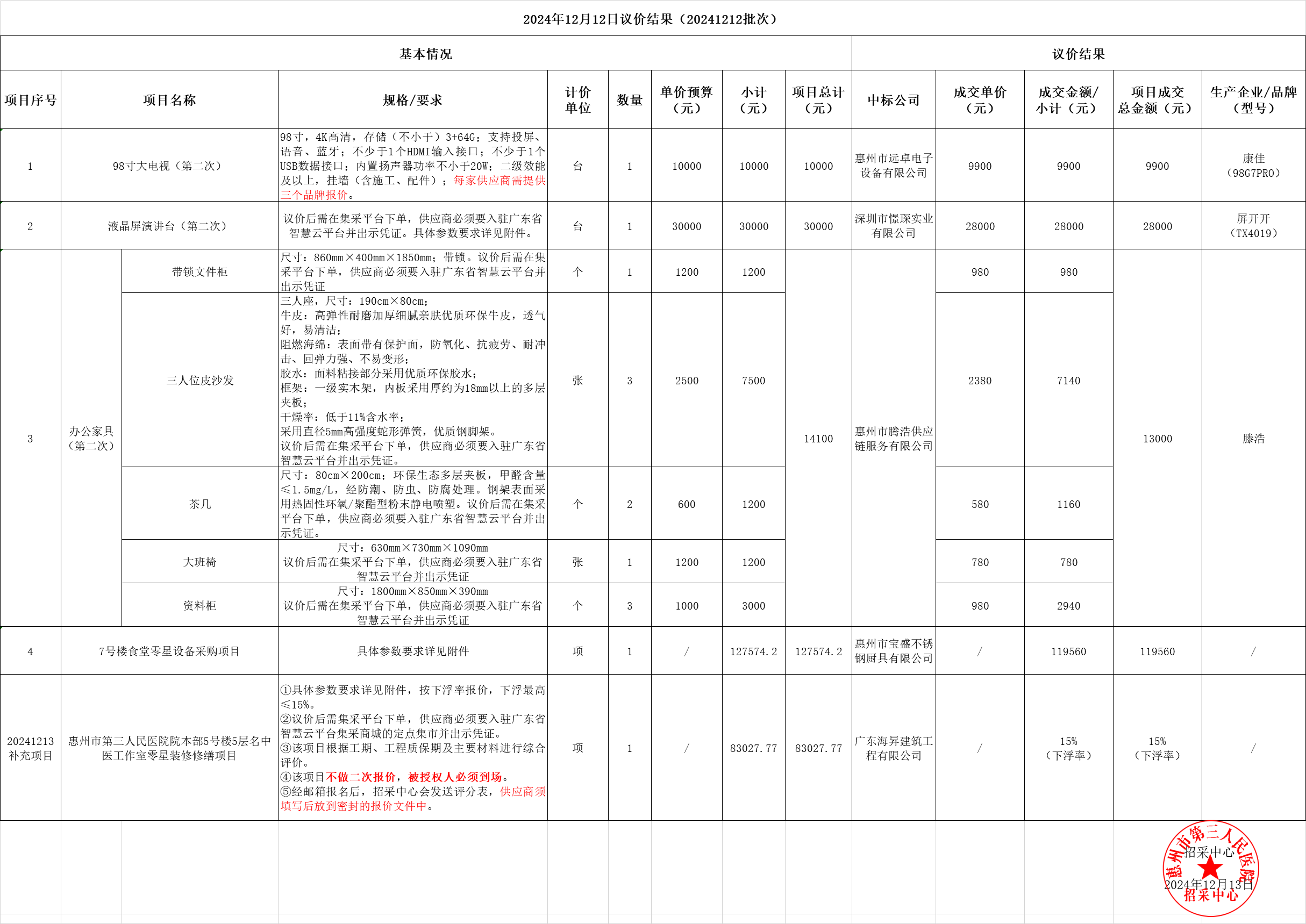 20241212、20241213議價(jià)結(jié)果公示