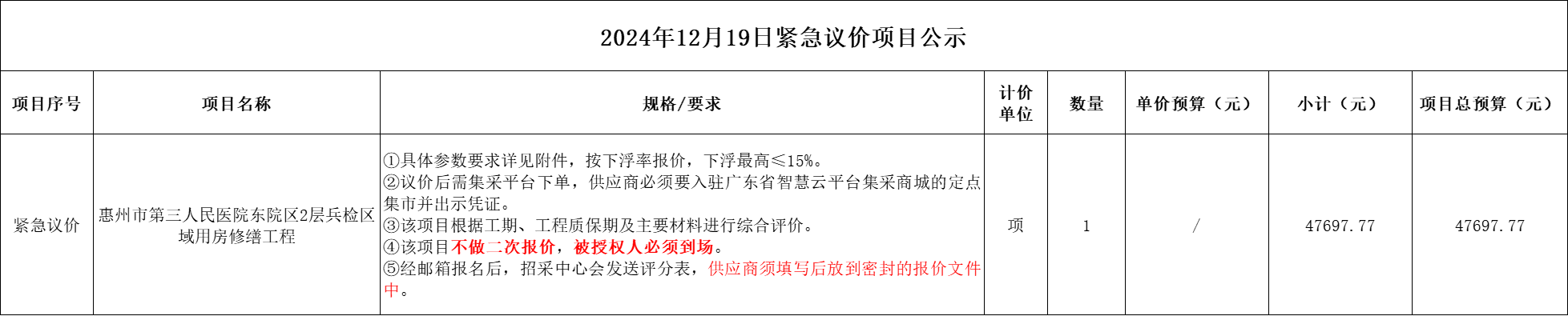 一、項(xiàng)目名稱:20241219緊急議價(jià)項(xiàng)目