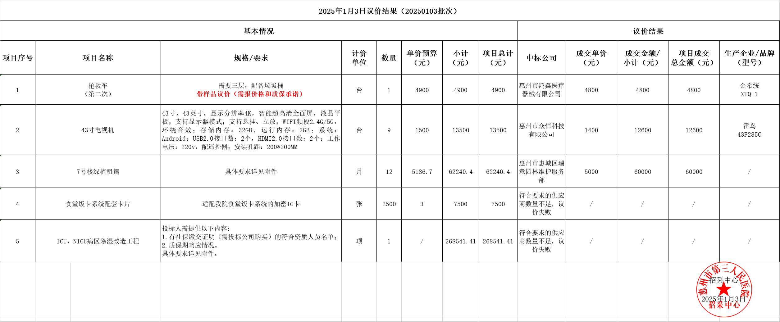 20250103議價(jià)結(jié)果公示