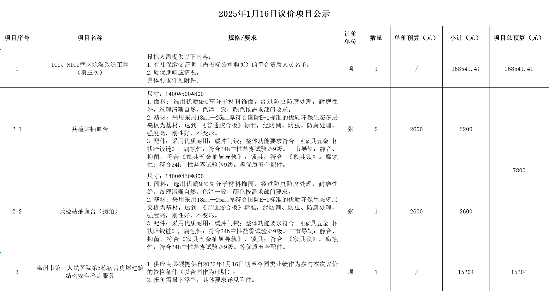 惠州市第三人民醫(yī)院擬定一批采購(gòu)項(xiàng)目進(jìn)行議價(jià)采購(gòu),歡迎符合資格條件的投標(biāo)人投標(biāo)。
