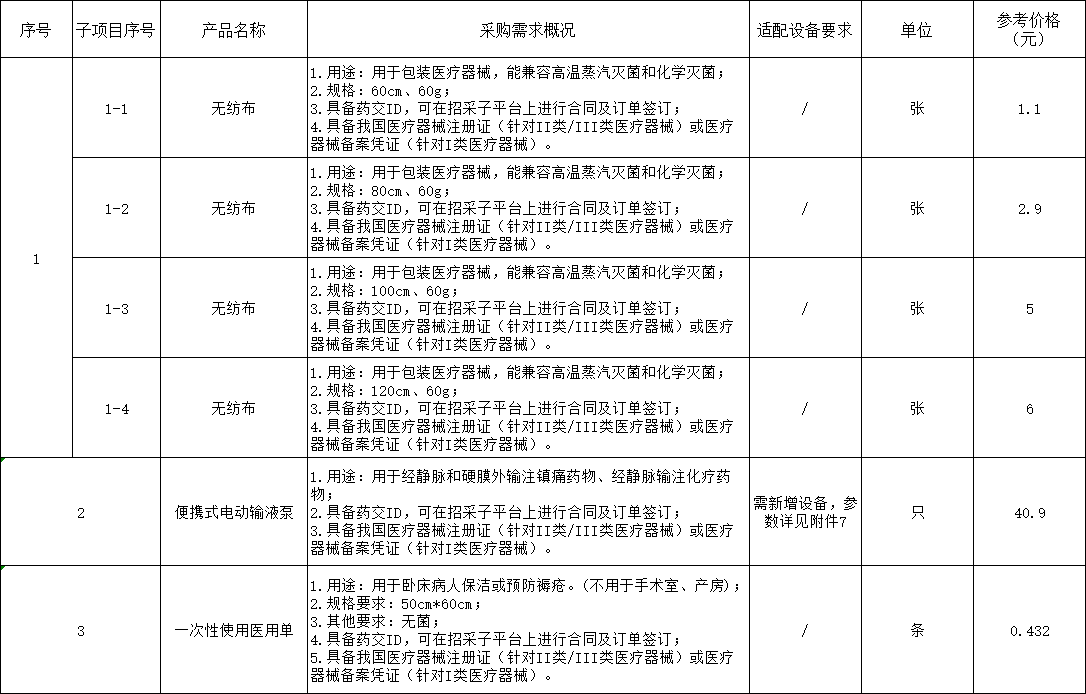 我院擬定一批醫(yī)用器械項(xiàng)目進(jìn)行耗材采購議價(jià),歡迎符合資格條件的廠家及配送公司報(bào)名參加。