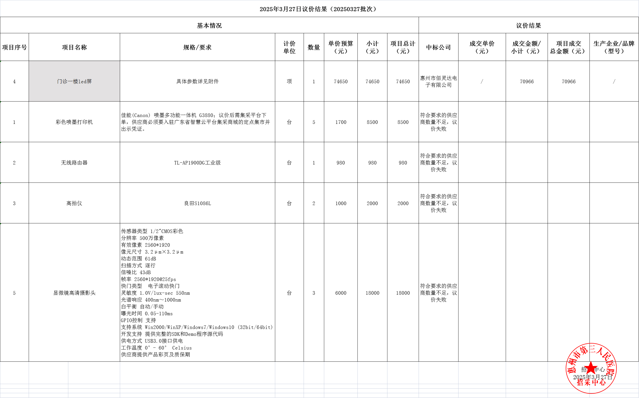 惠州市第三人民醫(yī)院20250327議價(jià)結(jié)果公示