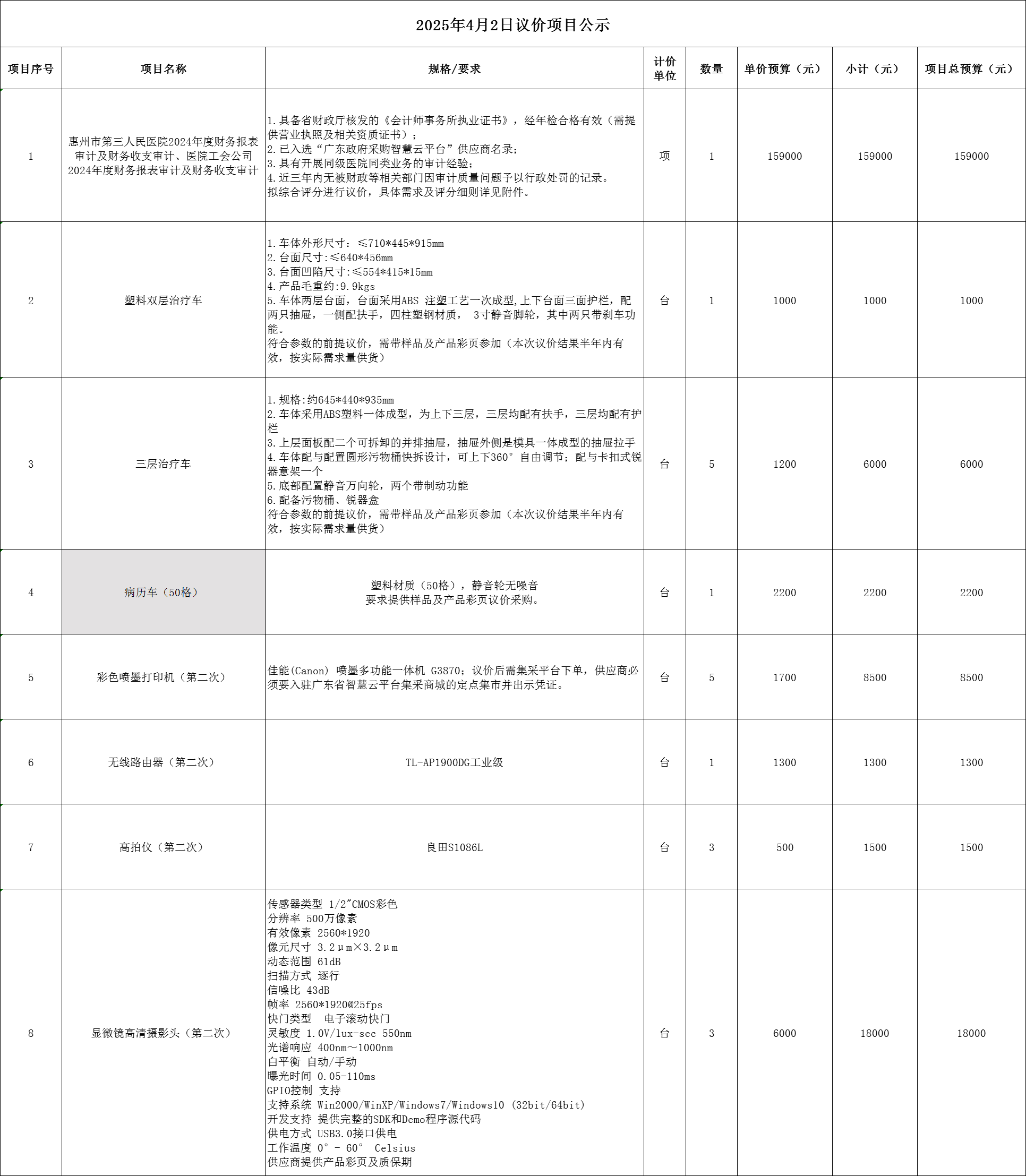 惠州市第三人民醫(yī)院擬定一批采購項目進(jìn)行議價采購,歡迎符合資格條件的投標(biāo)人投標(biāo)。