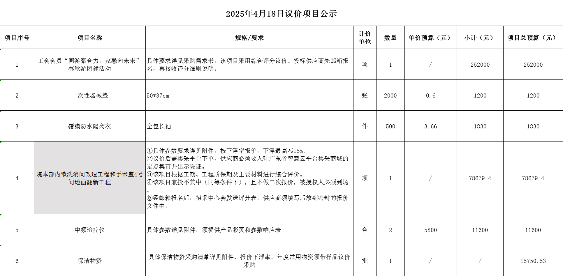 一、項(xiàng)目名稱:20250418議價(jià)項(xiàng)目