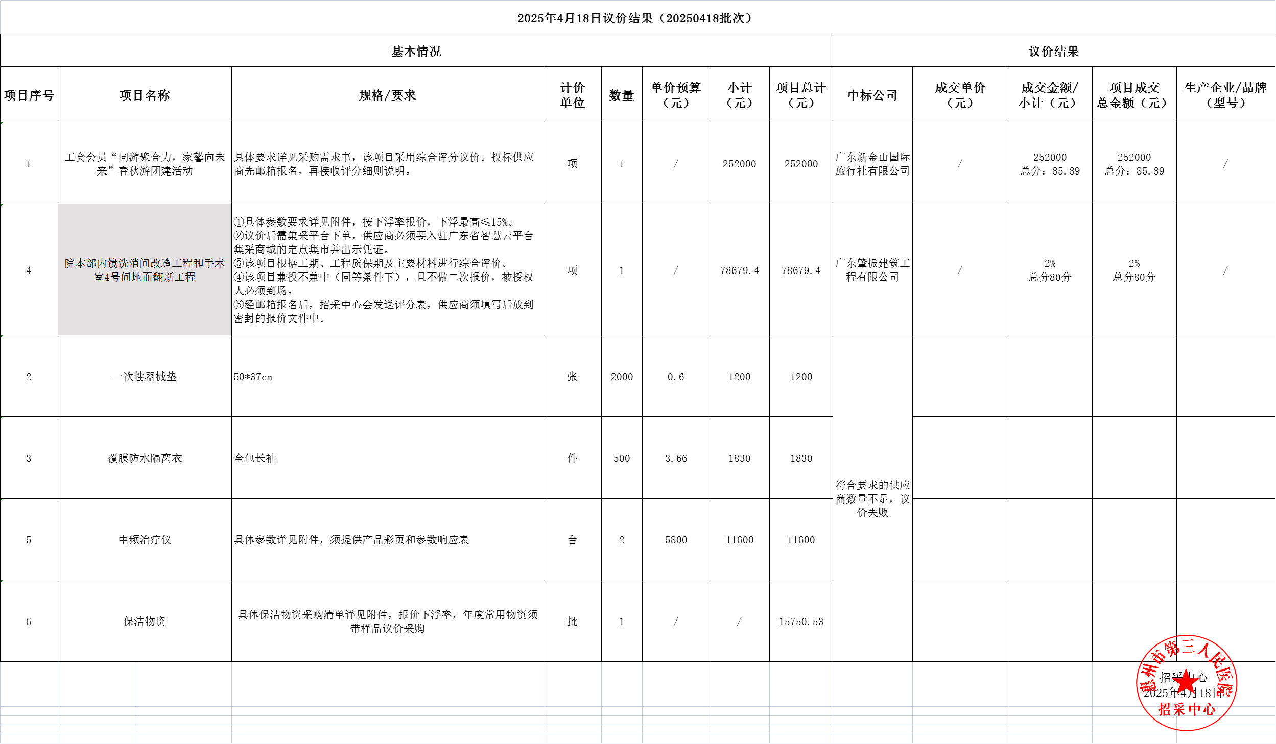 惠州市第三人民醫(yī)院20250418議價(jià)結(jié)果公示