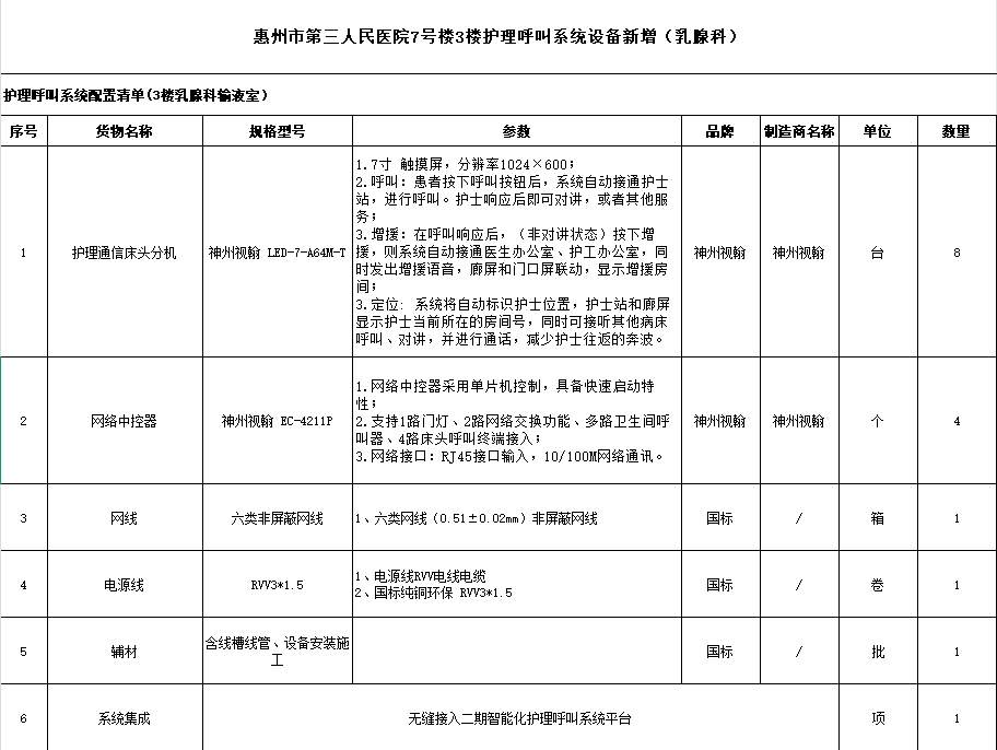 惠州市第三人民醫(yī)院關(guān)于7號樓3樓護理呼叫系統(tǒng)設(shè)備新增項目的市場調(diào)研公示