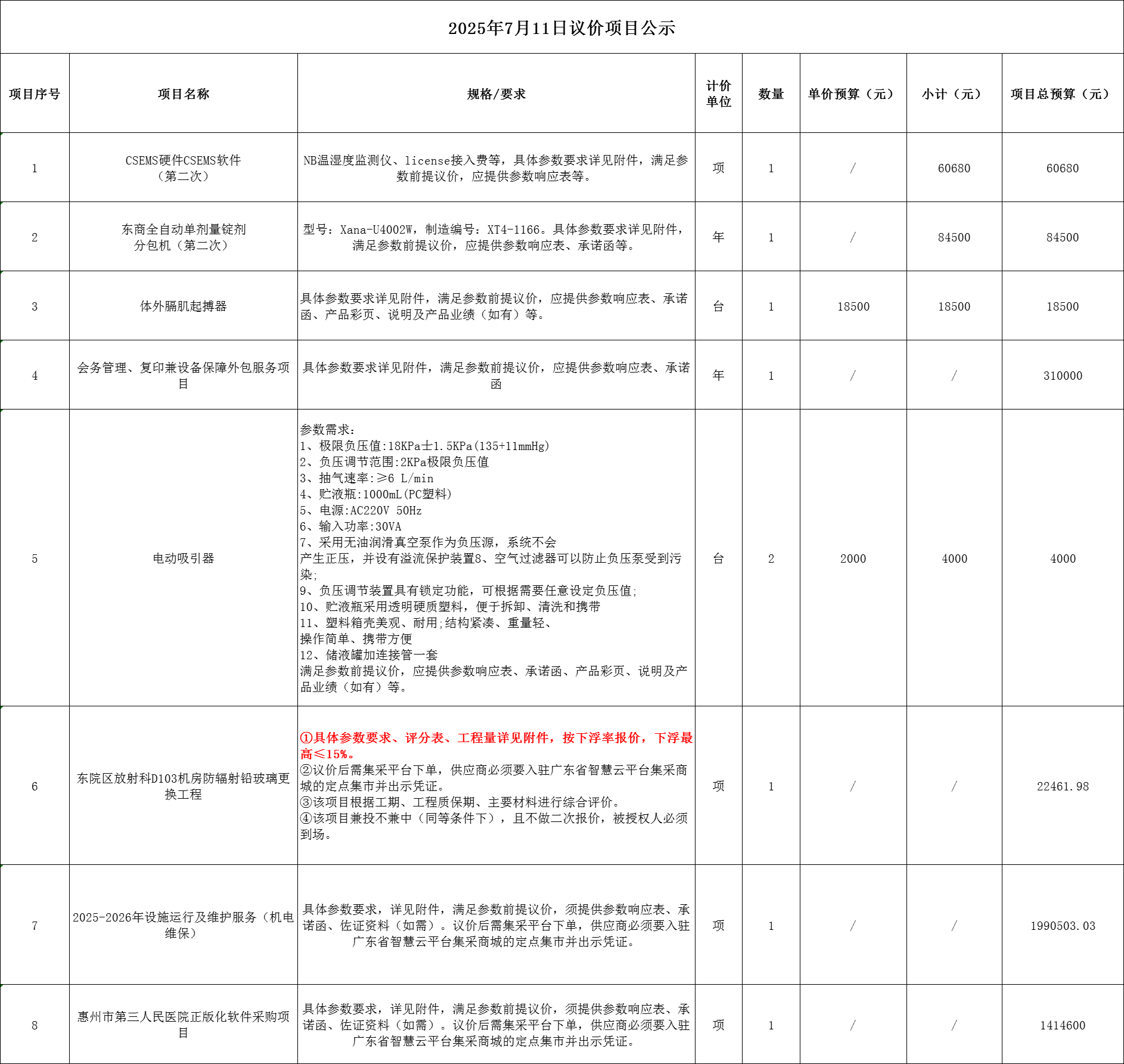 一、項目名稱:20250711議價項目