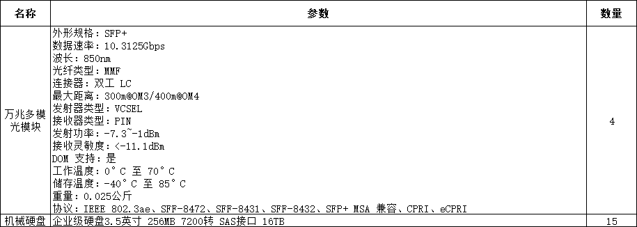 我院擬采購萬兆多模光模塊及機(jī)械硬盤采購項(xiàng)目,現(xiàn)進(jìn)行市場需求調(diào)查,請有意向的企業(yè)按以下要求提交資料。本次僅為市場調(diào)研,并非采購招標(biāo),醫(yī)院相關(guān)部門將對市場調(diào)研情況組織論證。