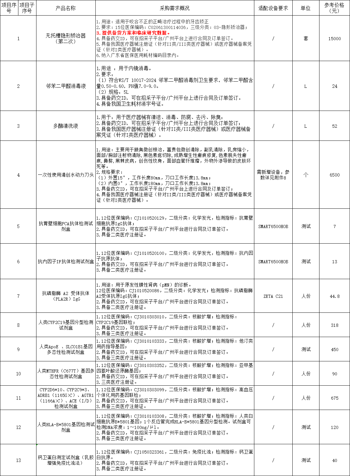 4、如報(bào)名多個(gè)醫(yī)用耗材項(xiàng)目,應(yīng)將所有報(bào)名的醫(yī)用耗材議價(jià)項(xiàng)目填入報(bào)名產(chǎn)品明細(xì)表(要用excel和PDF兩種格式提交)。