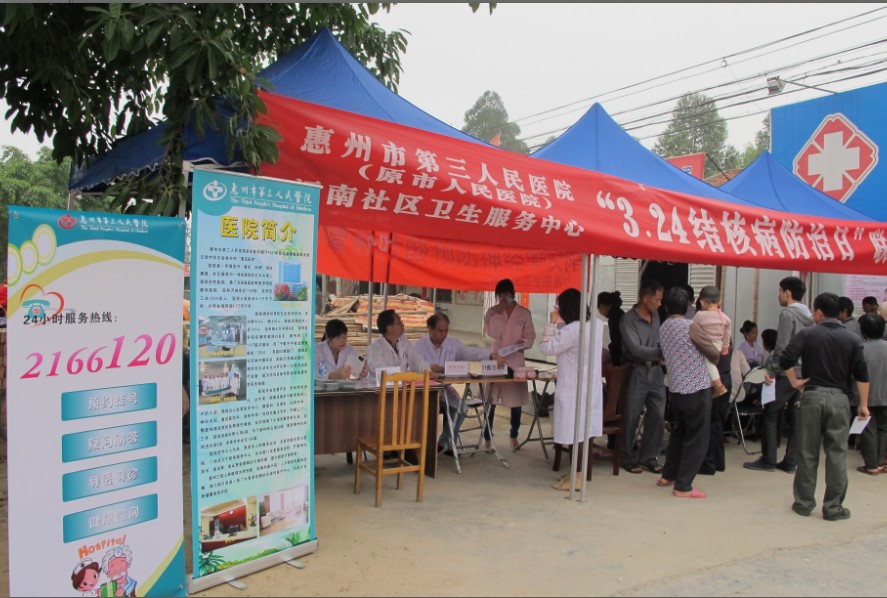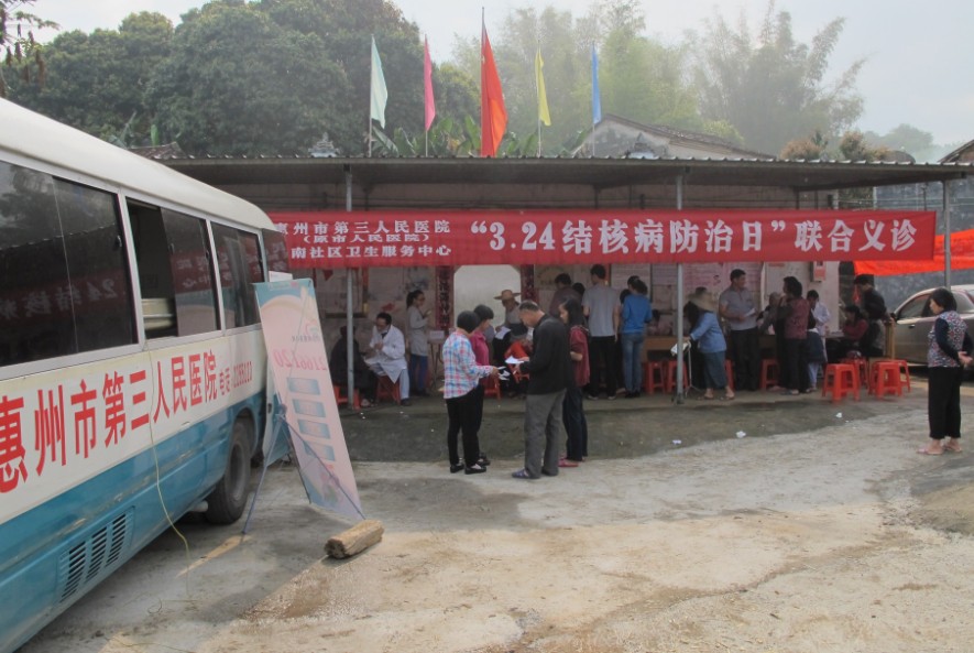 2013年3月24日是第18個“世界防治結核病日”,今年的主題仍是“你我共同參與,消除結核危害”。為消除結核病帶來的危害,讓廣大群眾,特別是結核病患者及其家屬了解更多防治結核病知識,惠州市第三人民醫(yī)院聯(lián)合江南社區(qū)衛(wèi)生服務中心在3月23、24日上午(兩個半天)開展兩場“3•24結核病防治日”專項義診活動,共為江南七聯(lián)管理區(qū)近600名村民提供免費胸透檢查、專家現場咨詢、健康教育等服務。