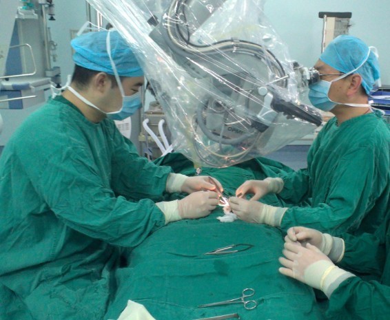 我院泌尿外科男科組張東江副主任醫(yī)師、蔡華戈主治醫(yī)師等人最近率先在惠州地區(qū)開展了顯微鏡下高位結扎曲張的精索靜脈10余例,手術效果良好。使用顯微外科技術可以發(fā)現(xiàn)并結扎上述血管,明顯減少復發(fā)、再發(fā)。另外顯微外科技術經(jīng)外環(huán)口下方人路,不需解剖腹外斜肌腱膜及腹股溝管,手術創(chuàng)傷小,避免損傷腹股溝神經(jīng)及髂腹下神經(jīng),同時手術切口術后可被陰毛覆蓋,滿足一部分患者的美觀需要。顯微外科技術的使用,能徹底結扎曲張精索內(nèi)靜脈,手術復發(fā)率降低。結扎睪丸牽引帶處穿支靜脈,能有利于患者術后癥狀緩解及降低術后復發(fā)率。保留精索內(nèi)動脈及淋巴管,能防止睪丸萎縮及陰囊水腫及鞘膜積液的形成。在顯微鏡下解剖精索,操作時間較其他術式長,并且需一定的操作技巧。該方法設備要求不高,經(jīng)過一定的訓練后操作不復雜,適合在基層醫(yī)院推廣。(泌尿外科 石崇軍)