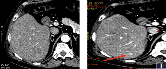 人體內(nèi)的很多小病灶也同樣容易被混合能量成像的常規(guī)CT所掩蓋,但是在單能量成像下,這些小病灶會突顯出來,這樣,可以提高癌癥早期診斷的能力。